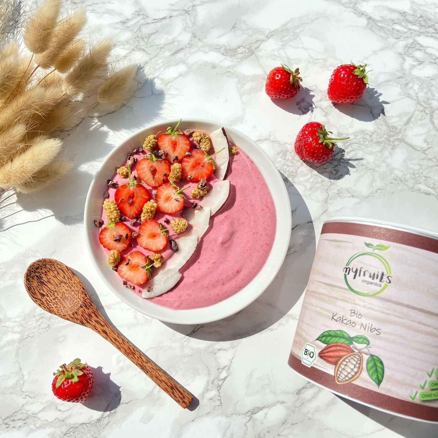 Nuestros nibs de cacao orgánico son ideales como cobertura para muesli, gachas, granola, smoothies y yogur. También son perfectos para postres o para preparar snacks como galletas de avena, barritas de muesli y granola.